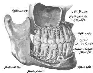 تُسمَّى الأضراس أو الأرحاء أو الطواحن (بالإنجليزية: molars)، وهي تقع في نهايات الفك على الجانبين (انظر الشكل).