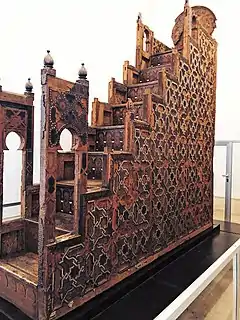 | المنبر المُرابطي في مسجد الكتبية معروض في قصر البديع في مراكش اليوم. | ||