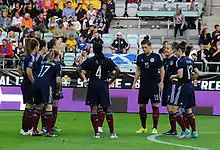 منتخب اسكتلندا لكرة القدم للسيدات يتشكل الفريق من: جيما فاي ( شانون لين 46' ) ، رهوندا جونس، جينيفر بياتي ( فرانكي براون 56' ) ، إليش ميكسورلي، راشيل سمال، لياني كريكتون ( إما ميتشيل 66' ) ، لياني روس، هايلي لاودر ( جويل موراي 78' ) ، كيم ليتلي، جاني روس ( سوزان مالوني 89' ) ، جوان لوف ( سوزان غرانت 76' ).[2][3][4]