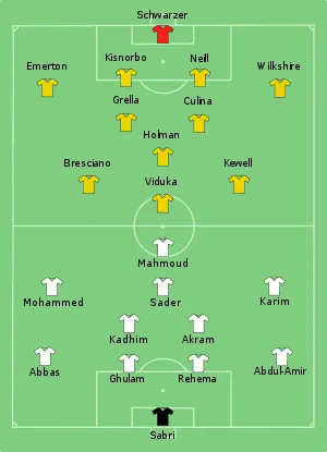 انطلق العراق في البطولة بالتعادل 1-1 مع تايلاند في بانكوك. وبعد ذلك فاز العراق 3-1 ضد أستراليا وبعدها تعادل 0-0 مع سلطنة عمان.[45] فاز العراق في الدور ربع النهائي على فيتنام 2-0[46]، واجه العراق في الدور نصف النهائي كوريا الجنوبية إنتهت المباراة بعد الأشواط الإضافية بالتعادل السلبي. كان نور صبري بطل العراق عندما تصدّى لركلة الجزاء الرابعة للعراق.[47] وبعد ذلك تأهل إلى النهائي.