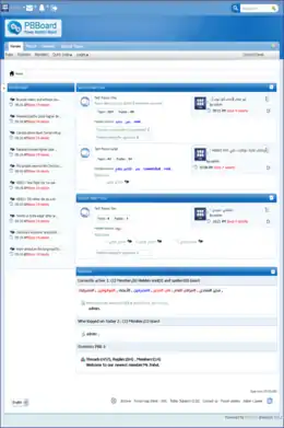 لوحة التحكم: هي واجهة للتحكم في المنتدى خلف الكواليس ولا يمتلك صلاحية الدخول إليها سوى المدير. واجهة المستخدم: هي الصفحة الرئيسية والصفحات الداخلية للمنتدى والتي تتكون من محتوى وتنسيق مرتب بلغة برمجية معينة ومعلومات تتغير بشكل تلقائي مبرمجة بلغة معينة مثل البي إتش بي PHP، إلى غير ذلك من الصور والألوان والنصوص.