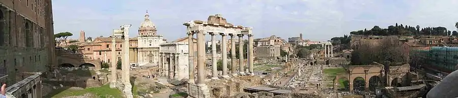 كان المنتدى الروماني - الواقع في وادٍ صغير بين هضبتي بالاتين وكابيتولين - لقرونٍ طويلة قلب الحياة العامة في روما القديمة، فكانت تقام فيه الاحتفالات الشعبية والانتخابات الحكومية، وكان مركزاً لإلقاء الخطابات العامة وإجراء المحاكمات العلنية وعرض قتالاتٍ حتى الموت بين السجناء، بل وكذلك جوهر التجارة والحياة الاقتصادية الرومانية. كان الميدان مملوءاً بتماثيل تخلّد ذكرى رجالٍ رومان قدماء. يعتقد البعض أن المنتدى الروماني كان أشهر ملتقى عام في التاريخ بأسره،[1] إذ لا زال يجتذب حتى الآن كموقعٍ أثري بارز 4.5 ملايين زائرٍ سنوياً.[2]