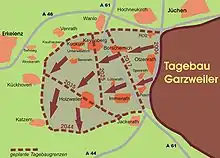 وكانت شركة آر دبليو إي باور تستخرج الفحم من غارتزوايلر 1 و 2 . يشمل منجم غارتزوايلر 1 66 كيلومتر مربع وتقع شرقا من الطريق السريع A 44 ، واما حقل منجم غارتزوايلر 2 فهي تقع غرب هذا الطريق السريع وتبلغ مساحتها 18 كيلومتر مربع .