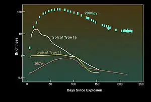 كما أن للمستعرات العظمى منحنيات ضوئية مختلفة، فأثناء الانفجار يصدر النجم المنفجر أشعة شديدة النفاذية مثل أشعة إكس وأشعة جاما نظرا لعمليات فيزيائية شديدة الطاقة تحدث في داخله، ثم يتبعها منحنى ضوئيا بعدما تكون درجة حرارة الانفجار قد هدأت بعض الشيء . أي أن دراسة المنحنيات الضوئية سواء كانت لأشغة جاما أو أشعة إكس أو للأشعة المرئية أو الاشعة تحت الحمراء تساعدنا في التعرف على العمليات الفيزيائية الجارية في باطن نجم .