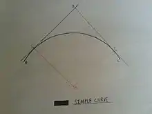 المنحني البسيط لديه نفس نصف القطر وهو قوس وحيد من دائرة مع ممسين يتقابلان في نقطة التقاطع.