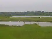 تحدث أشكال مختلفة من مستنقعات الماء المالح في المستنقعات المالحة (مختلف نباتات العائلة النجيلية) ومن الأنواع الأصلية السائدة هناك الحشائش الشائكة (ديستكليس سنبلي), وفي بعض مستنقعات الماء المالح تنتشر عشبة البرك رفيعة الأوراق (التيفا ضيقة الأوراق) وهي أنواع غريبة قادمة من الخارج.
