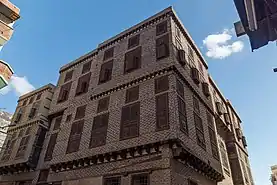 كان يتم تزيين الواجهات بالمشربيات والبارزات والشبابيك الخرط بجميع أنواعها والتي تم تجميعها وتعشيقها دون مسامير، والمطعمة بالعاج والصدف، واستخدام الفراغات الداخلية في عمل دواليب حائطية مزدانة بالزخارف وأحيانًا يعلوها خورنقات عبارة عن فتحات صغيرة مزخرفة توضع بها أوان زخرفية للزينة".