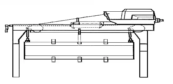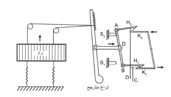 يؤدي خفض الذراع C إلى خفض الذراع الظفري H1 وتعاشقه مع السكينة k1 بينما تؤدي حركة السكينة نحو اليمين إلى جر الذراع الظفري وتباعد النهاية B للذراع AB عن مسندها S1، ودوران الذراع AB حول نقطة التماس بين النهاية A والمسند S2. يتم نقل حركة الذراع AB إلى الذراع المتأرجح بواسطة الوصلة D يسمح الذراع المتأرجح بتضخيم الحركة وتحريك درأة واحدة. نابض الإرجاع الذي يقوم بإعادة الدرأة إلى وضعها الأصلي يقوم أيضاً بالمحافظة على تماس نهاية واحدة على الأقل للذراع مع أحد المسندين S1،S2.[1]