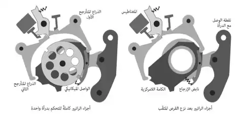يقوم بتحريك الدرأ في كلا الاتجاهين حيث تقوم بسحب الدرأ وإعادته إلى وضعه الأصلي، لذلك لا توجد حاجة إلى استخدام نوابض إرجاع.