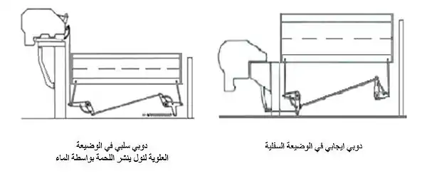 يبين الشكل الجانبي دوبي سلبي وتم وصل الدوبي بالدرأ عن طريق كبل يقوم بسحب الدرأ ولا يمكن دفع الدرأ لأن الكبل يقوم بالسحب فقط، حيث تعود الدرأة بفعل وزنها أو بوجود نوابض إرجاع إلى وضعها الأصلي.