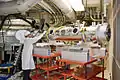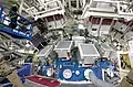 Exterior view of the upper 1/3 of the target chamber. The large square beam ports are prominent.
