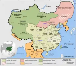 في عام 1644 م، بعد أن قام المتمردون الفلاحون بنهب عاصمة سلالة مينغ في بكين، تحالف الجورشن(5) مع جنرال المينغ وو سانغوي [الإنجليزية] وسيطروا على بكين، وأطاحوا بسلالة شون قصيرة العمر (1644 – 1649 م) وأسسوا مملكة تشينغ (1644 – 1912 م) على كل الصين. تسبب غزو المانشو للصين في مقتل أكثر من 25 مليون شخص.[63] قامت أسرة تشينغ ببناء حافة الصفصاف(6) خلال القرن السابع عشر المتأخر لتقييد حركة المدنيين الهان إلى جيلين وهيلونغجيانغ.[64] لم يُسمح إلا للبنرمينين(7)، بما في ذلك للبنرمينين الصينيين، بالاستقرار في جيلين وهيلونغجيانغ.