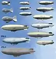 - منطاد الفئة K ومنطاد الفئة M، والمناطيد الأمريكية المضادة للغواصات التي استخدمت خلال الحرب العالمية الثانية.