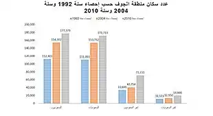 يعدّ النمو السكاني في منطقة الجوف مرتفعاً بشكل عام حيث يبلغ عدد السكان 520,737 نسمة وفقاً لتقرير الهيئة العامة للإحصاء لعام (2018).[58][59]