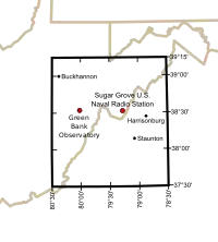 خريطة توضح مدى منطقة الهدوء اللاسلكية الوطنية بالولايات المتحدة .