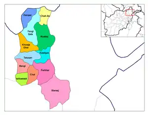 |CitationClass=تم تجاهله (مساعدة) - "Afghanistan District Maps". maps.arcgis.com. مؤرشف من الأصل في 13 نوفمبر 2020. اطلع عليه بتاريخ 29 يوليو 2020. الوسيط