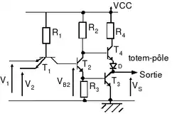 "توتيم بول" أو "عمود توتيم" يعني إضافة ترانزستورين ثنائيا القطبية، مقاومة وصمام ثنائي عند مخرج الدائرة.