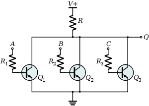 عمل البوابة المنطقية NOR باستخدام ترانزستور واحد (منطق مقاوم ترانزستور)