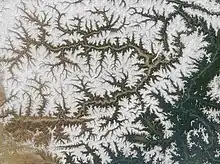 منظومة التصريف الشجيرية (ذات التشعبات الشبيهه بأغصان شجرة) هي الشكل الأكثر شيوعا في منظومات التصريف. تساهم العديد من الجداول المائية (المشابهة لاغصان شجرة) في المنظومة الشجيرية، والتي تنضم بعد ذلك معا داخل روافد النهر الرئيسي (مثل الفروع وجذع الشجرة تِبَاعاً). وهي تتنامي بينما تتبع القناة النهرية الانحدار الأرضي. تتشكل المنظومات الشجيرية في الوديان التي تكون على شكل حرف V، وبالتبعية، ينبغي أن تكون الصخور من الأنواع الغير منفذة للماء والغير مسامية.[3]