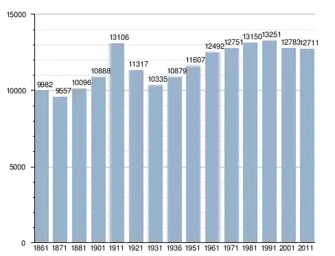في سنة 1861 بلغ عدد السكان 9٬982 نسمة، وتطور العدد ليصل في سنة 2011 لـ 12٬711 نسمة.