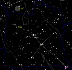 ![]() موقع النجم المزدوج منقار الدجاجة في كوكبة الدجاجة. | |