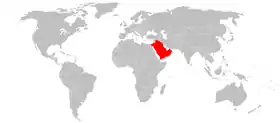 ![]() الموطن التقريبي الكامل للمها العربي | |