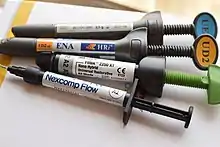 [6] وتستخدم هذه المواد السنية المركبة الملونة إما مباشرة أو كمواد بطانة وإعادة بناء هيكل السن بشكل غير مباشر. وعادةً ما يتم معالجتها ضوئياً.