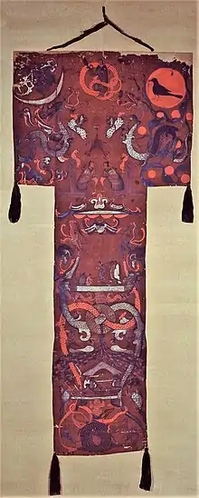 لافتة جنائزية لماركيز دي داي ، قبر 1 من مواندجوي ، هان الغربية ، 168-145 قبل الميلاد ، حبر وألوان على الحرير ، ح : 205 سم، متحف مقاطعة هونان.
