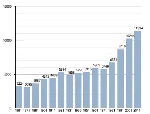 في سنة 1861 بلغ عدد السكان 3٬224 نسمة، وتطور العدد ليصل في سنة 2011 لـ 11٬394 نسمة.