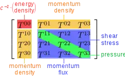 موتر الإجهاد-الطاقة، يسمى أحيانًا موتر الإجهاد-الطاقة-الزخم أو موتر الطاقة-الزخم، هو كمية موتر في الفيزياء تصف كثافة وتدفق الطاقة والزخم في الزمكان، مع تعميم موتر الإجهاد في فيزياء نيوتن. إنها سمة من سمات المادة والإشعاع ومجالات القوة غير الجاذبية. هذه الكثافة وتدفق الطاقة والزخم هي مصادر مجال الجاذبية في معادلات أينشتاين للمجال للنسبية العامة،[1] تمامًا كما أن كثافة الكتلة هي مصدر مثل هذا المجال في الجاذبية النيوتونية.