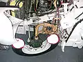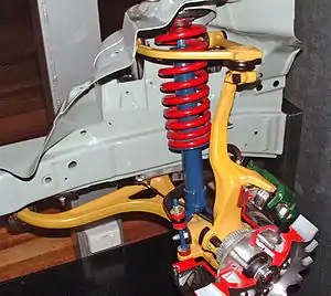 تعليق عجلة من عام 1935 بموجّه علوي ونابض صفيحي سفلي.