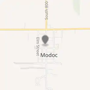 مودوك (بالإنجليزية: Modoc, Indiana) هي بلدة أمريكية تقع في الولايات المتحدة في Randolph County.[3] يقدر عدد سكانها بـ 196 نسمة ومساحتها 0.26 كم2 وترتفع عن سطح البحر 358 متر.
