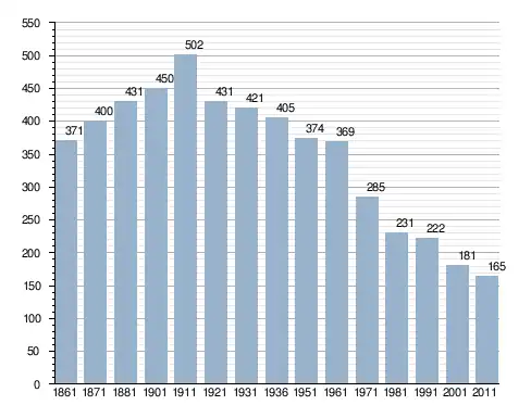 في سنة 1861 بلغ عدد السكان 371 نسمة، وتطور العدد ليصل في سنة 2011 لـ 165 نسمة.