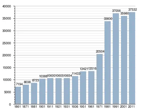 في سنة 1861 بلغ عدد السكان 7٬194 نسمة، وتطور العدد ليصل في سنة 2011 لـ 37٬532 نسمة.