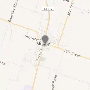 مودي (بالإنجليزية: Moody) هي مدينة أمريكية تقع في ولاية تكساس.تبلغ مساحة هذه المدينة 2.2 (كم²)،ويبلغ عدد سكانها 1400 نسمة حسب إحصاء سنة 2010 م.[5] تشير إحصاءات سنة 2000م بأن الكثافة السكانية في هذه المدينة تقدر بـ(635.4) نسمة/كم2.[6]
