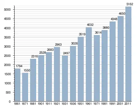 في سنة 1861 بلغ عدد السكان 1٬794 نسمة، وتطور العدد ليصل في سنة 2011 لـ 5٬162 نسمة.