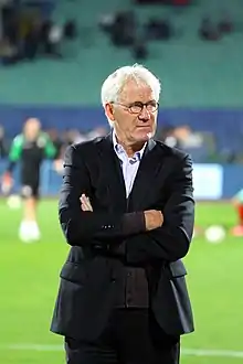 يدرب منتخب الدنمارك لكرة القدم منذ عام 2000.