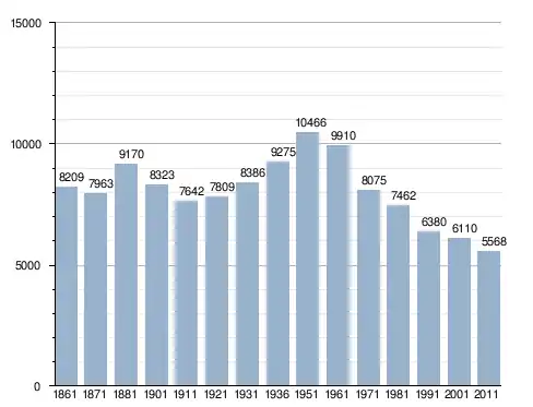 في سنة 1861 بلغ عدد السكان 8٬209 نسمة، وتطور العدد ليصل في سنة 2011 لـ 5٬568 نسمة.