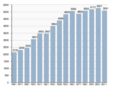 في سنة 1861 بلغ عدد السكان 2٬135 نسمة، وتطور العدد ليصل في سنة 2011 لـ 5٬091 نسمة.