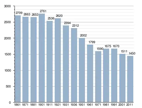 في سنة 1861 بلغ عدد السكان 2٬709 نسمة، وتطور العدد ليصل في سنة 2011 لـ 1٬450 نسمة.