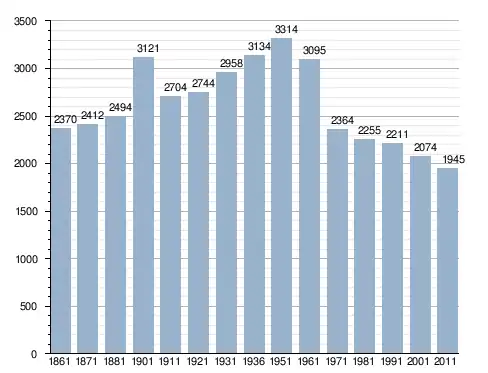 في سنة 1861 بلغ عدد السكان 2٬370 نسمة، وتطور العدد ليصل في سنة 2011 لـ 1٬945 نسمة.
