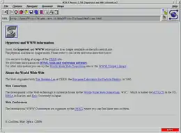 - "A Little History of the World Wide Web From 1960s to 1995". سيرن. 2001-05-05. مؤرشف من الأصل في 19 ديسمبر 2007. اطلع عليه بتاريخ 16 ديسمبر 2006. الوسيط