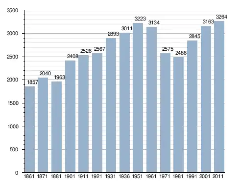 في سنة 1861 بلغ عدد السكان 1٬857 نسمة، وتطور العدد ليصل في سنة 2011 لـ 3٬264 نسمة.