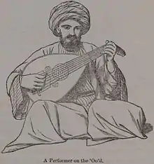 - العود (Lute): من الآلات الوترية المشهورة جداً، وهى آلة ذات أصول عربية شرقية بحتة. يتركب العود من خمسة أوتار مزدوجة ويمكن إضافة وتر سادس، تشد هذه الأوتار على مفاتيح عددها (12) مفتاحاً. ويتم العزف على الأوتار بواسطة ريشة مخصصة لذلك.