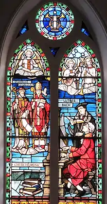 النهج الثاني كان من خلال مارتن لوثر حيث ترك لوثر إرثًا غزيرًا من الترانيم، التي جاء بعضها تلحينًا لمقاطع من الكتاب المقدس، أو وحيًا من مقاطع بعينها منه. قدّم لوثر ألحانًا للطبقات العليا، وكذلك استخدم الموسيقى الشعبية، بحيث تجمّع حول ترانيمه رجال الدين والرجال العاديين والنساء والأطفال.[9] انتشرت ترانيم لوثر في العبادات، والمدارس، والمنازل، والساحات العامة. الكثير من ترانيم لوثر، كانت مرتبطة بمواقف معينة من حياته لاسيّما كفاحه في سبيل الإصلاح، فمناظراته مع الكنيسة الرومانيّة هي التي دفعت لتقديمه ترنيمة نشيدًا جديدًا، نرفع نحن. (بالألمانية: Ein neues Lied wir heben an) والتي ترجمت لاحقًا إلى الإنجليزية ولحنتها ماريا تيدمان عام 1875.[10][11]