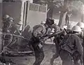 ووجهت دباباتهم مدافعها وأطلق البريطانيون نيران قنابلهم بشكل مركز وبشع بدون توقف ولمدة زادت عن الساعة الكاملة، ولم تكن قوات البوليس "الشرطة" مسلحة بشئ سوى البنادق العادية القديمة