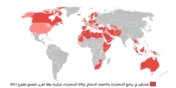 برنامج العودة الاستثنائية إلى الوطن التابع لوكالة المخابرات المركزية، الخارطة توضح البلدان المشاركة في البرنامج، وفقا لتقرير مؤسسة المجتمع المفتوح لعام 2013 عن ظاهرة التعذيب.[1][2]