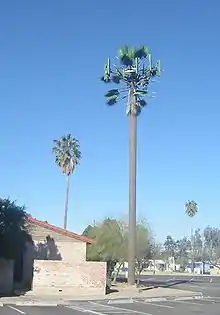 يمكن لمواقع الخلايا المخفية أن تميز نفسها بشكل أوراق الشجر ونوع اللحاء. تتكون أوراق كل هذه الهوائيات من أوراق مصنوعة من مادة بلاستيكية مصممة بدقة، مع مراعاة الكمية والشكل والمصفوفة المناسبة لإخفاء الهوائيات تمامًا وجميع أجزاء الملحقات بطريقة طبيعية. تضمن المواد المستخدمة الشفافية المطلقة للكهرباء الراديوية ومقاومة الأشعة فوق البنفسجية. تشمل الألقاب " مونوبالم" لمونوبول متنكّر في هيئة شجرة نخيل أو لصاري متنكّر في هيئة شجرة صنوبر. [24] في أحادي القطب، يتم إخفاء الهوائيات الاتجاهية أحيانًا في غلاف بلاستيكي بالقرب من أعلى العمود بحيث يمكن التخلص من العارضتين المتقاطعتين.