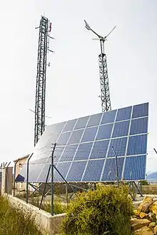 قد تكون المصادر المتجددة، مثل الطاقة الشمسية وطاقة الرياح [22] متاحة حيث توجد مواقع الخلايا. يمكن أن يقلل هذا من تكلفة الوقود إلى الموقع الخلوي أو برج الاتصالات بنسبة تصل إلى 75٪ ويمكن دعمها بواسطة نظام مولد الوقود الذي يسمح لموقع الخلية بالعمل عندما لا تكفي المصادر المتجددة. يتكون أحد أنظمة إنتاج الطاقة من: