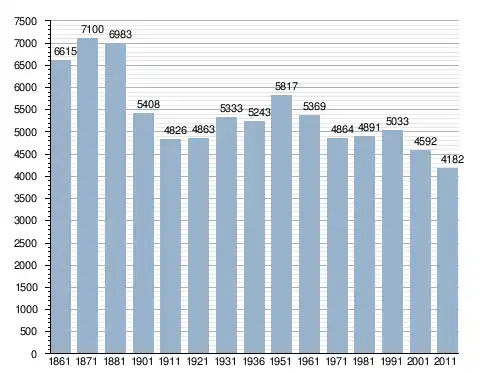 في سنة 1861 بلغ عدد السكان 6٬615 نسمة، وتطور العدد ليصل في سنة 2011 لـ 4٬182 نسمة.